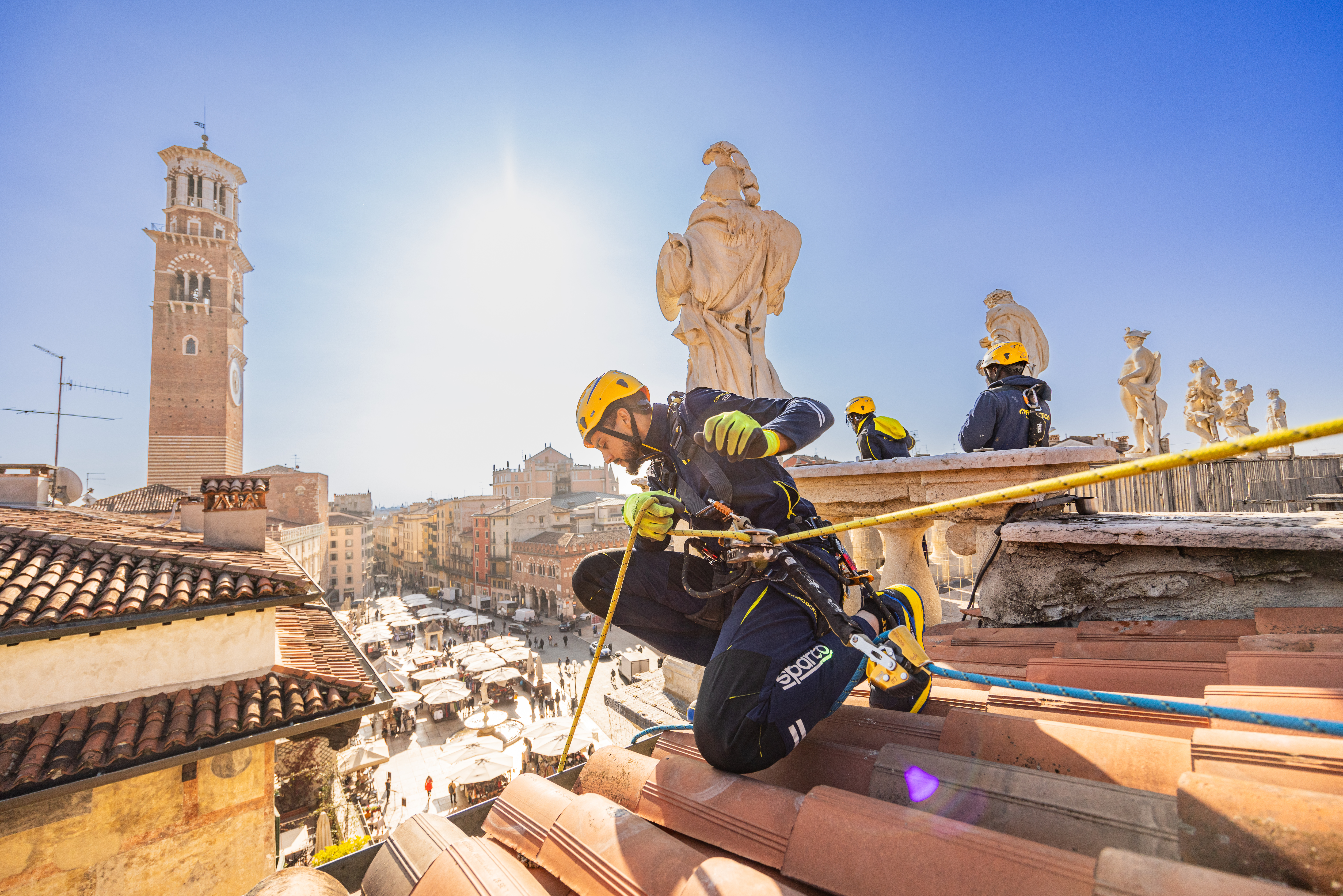L’incidente è avvenuto in un cantiere vicino Siena a due giovani muratori acrobatici specializzati nei lavori su corda durante un intervento di ristrutturazione di un tetto posto all’altezza di 6 metri dal suolo.